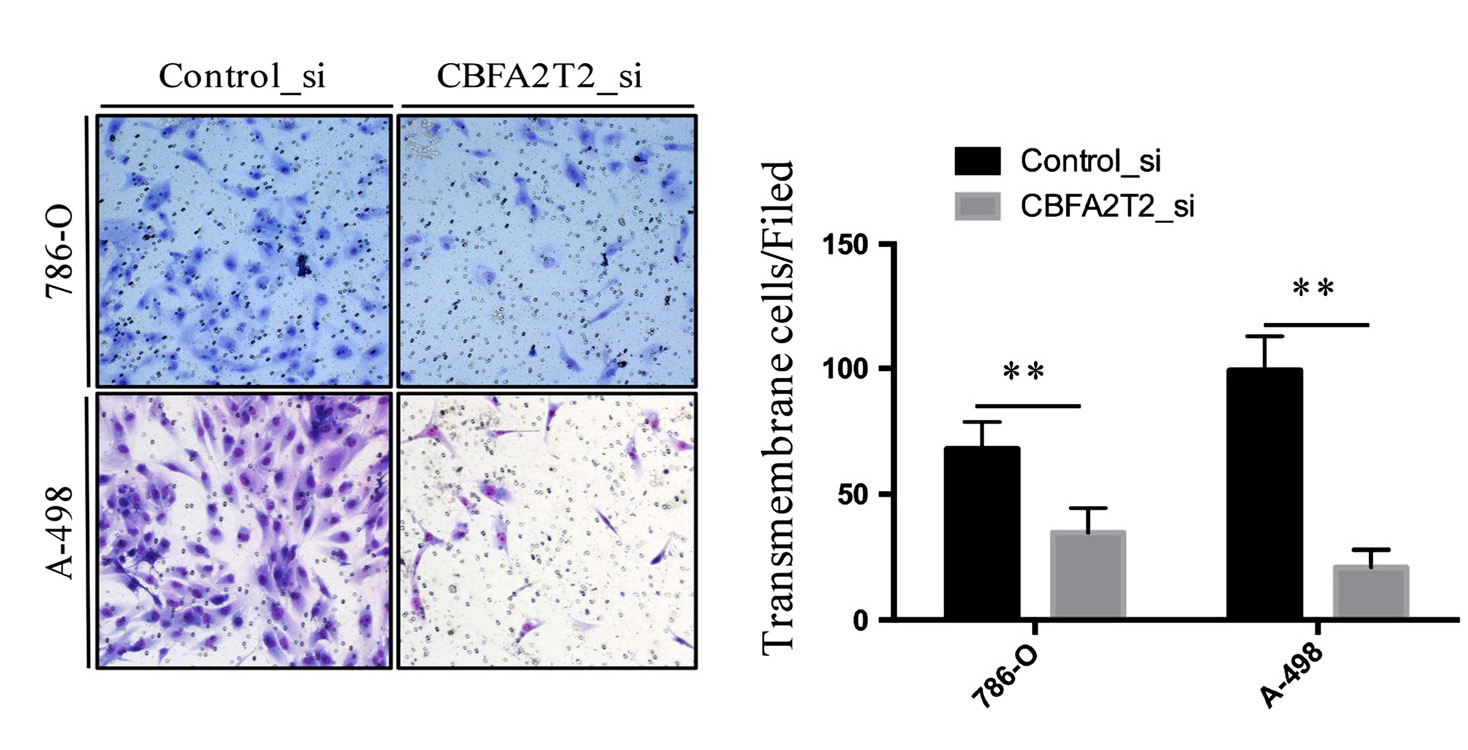 肿瘤侵袭实验:研究肿瘤细胞的侵袭能力或特定情况下肿瘤细胞的侵袭能力。在聚碳酸酯膜上涂上一层基质胶,模仿细胞外基质,上室种肿瘤细胞,下室加入FBS或某些特定的趋化因子,细胞要把基质消化后才可以从上室迁移到下室,计数进入下室的细胞量测定细胞的侵袭能力。